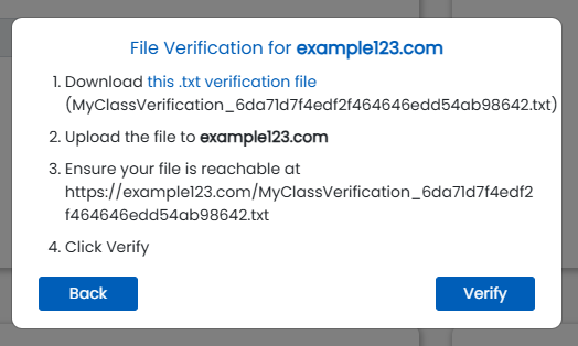 4. To start adding users and licenses, you will need to verify your domain. Click “Verify Now” and follow the prompts. You will need the ability and permissions to upload a .txt to your web server.